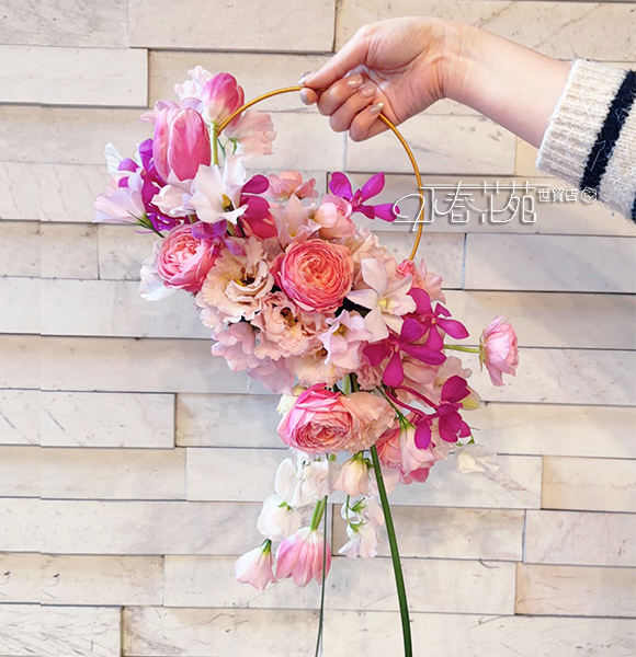 產品材料:鬱金香、桔梗、玫瑰、蘭花、當季花材